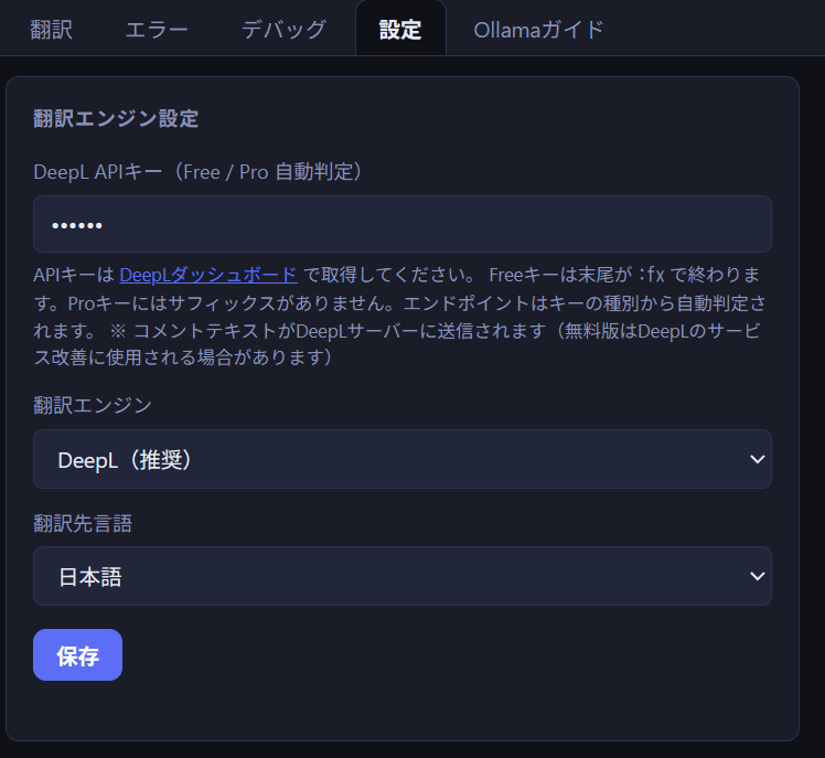 ・APIキー不要でオフライン翻訳したい方(Ollama使用時)